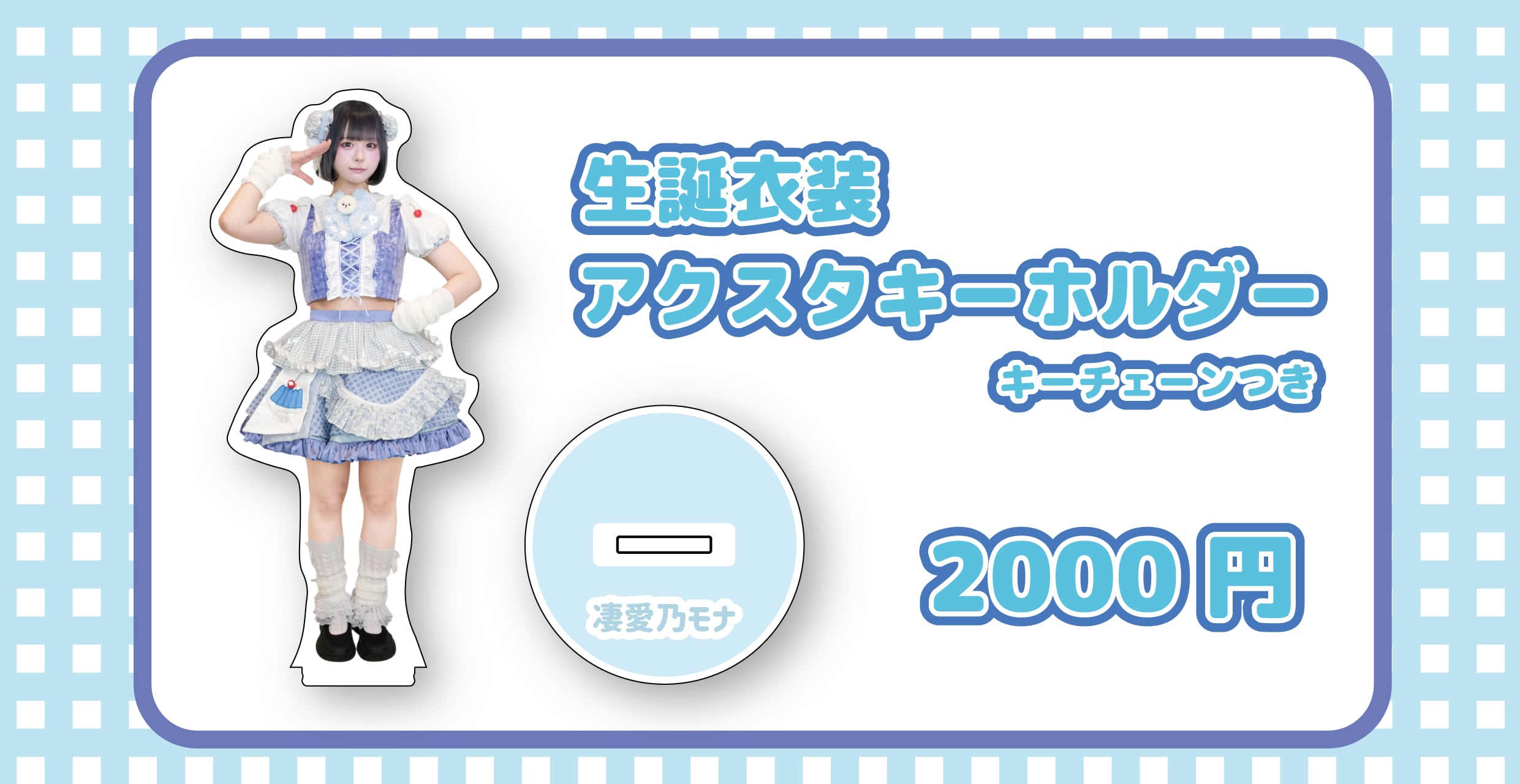 凄愛乃モナ生誕衣装アクスタキーホルダーです。 水色のプラチェーンがついておりキーホルダーとしてもご利用いただけます。